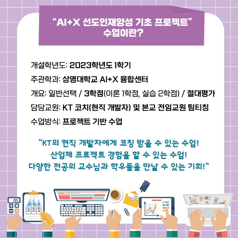 - [마감] '23학년도 1학기 “AI+X 선도인재양성 기초 프로젝트” 교과목 수업 신청
