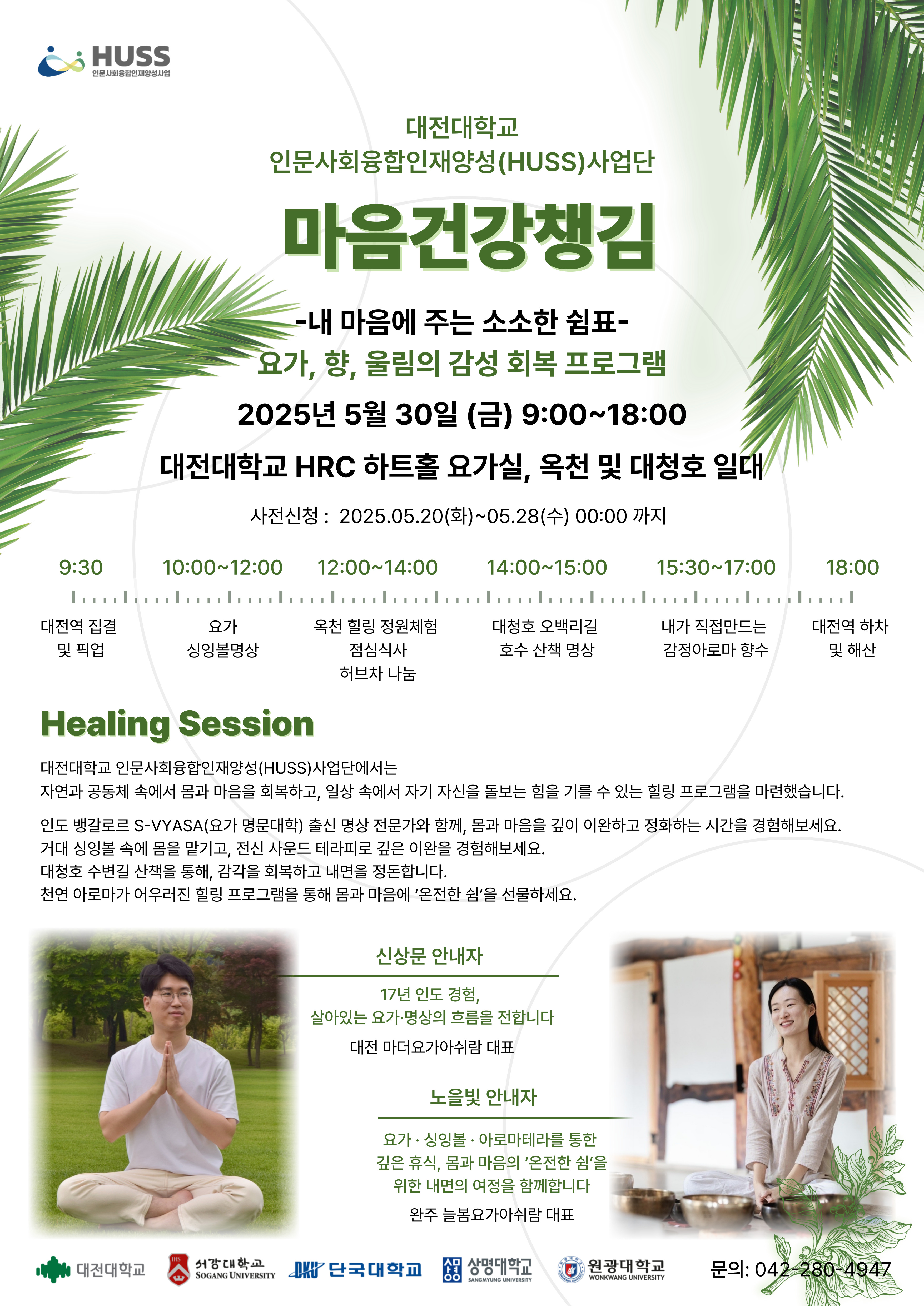 | 상명 [비교과] | [HUSS 인문사회 융합인재양성사업단] 인문사회융합인재양성사업(HUSS) 「마음건강챙김」 참가자 모집 안내 |