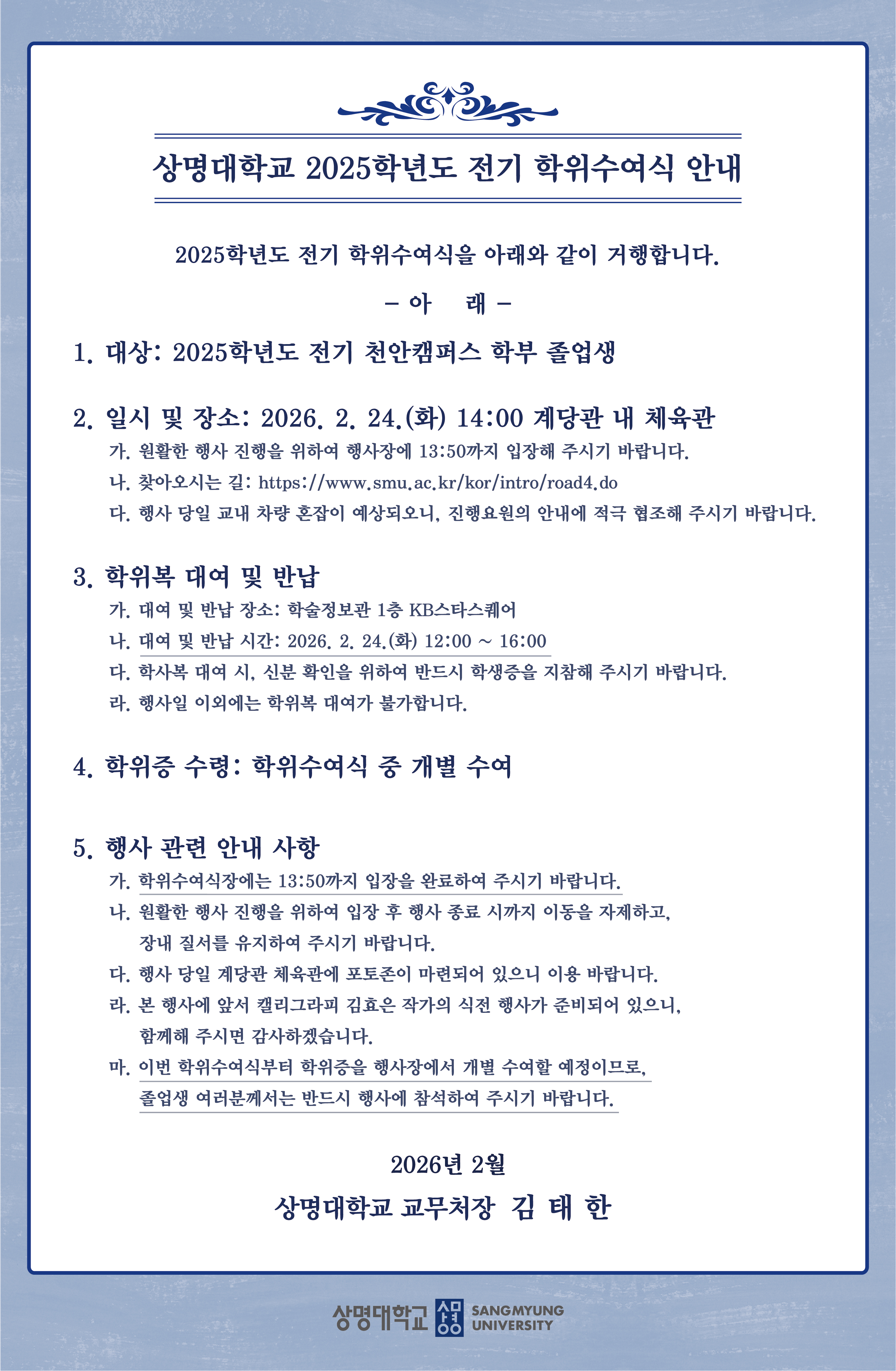 천안 [학사] [교무팀] 2025학년도 전기 학위수여식 안내 -