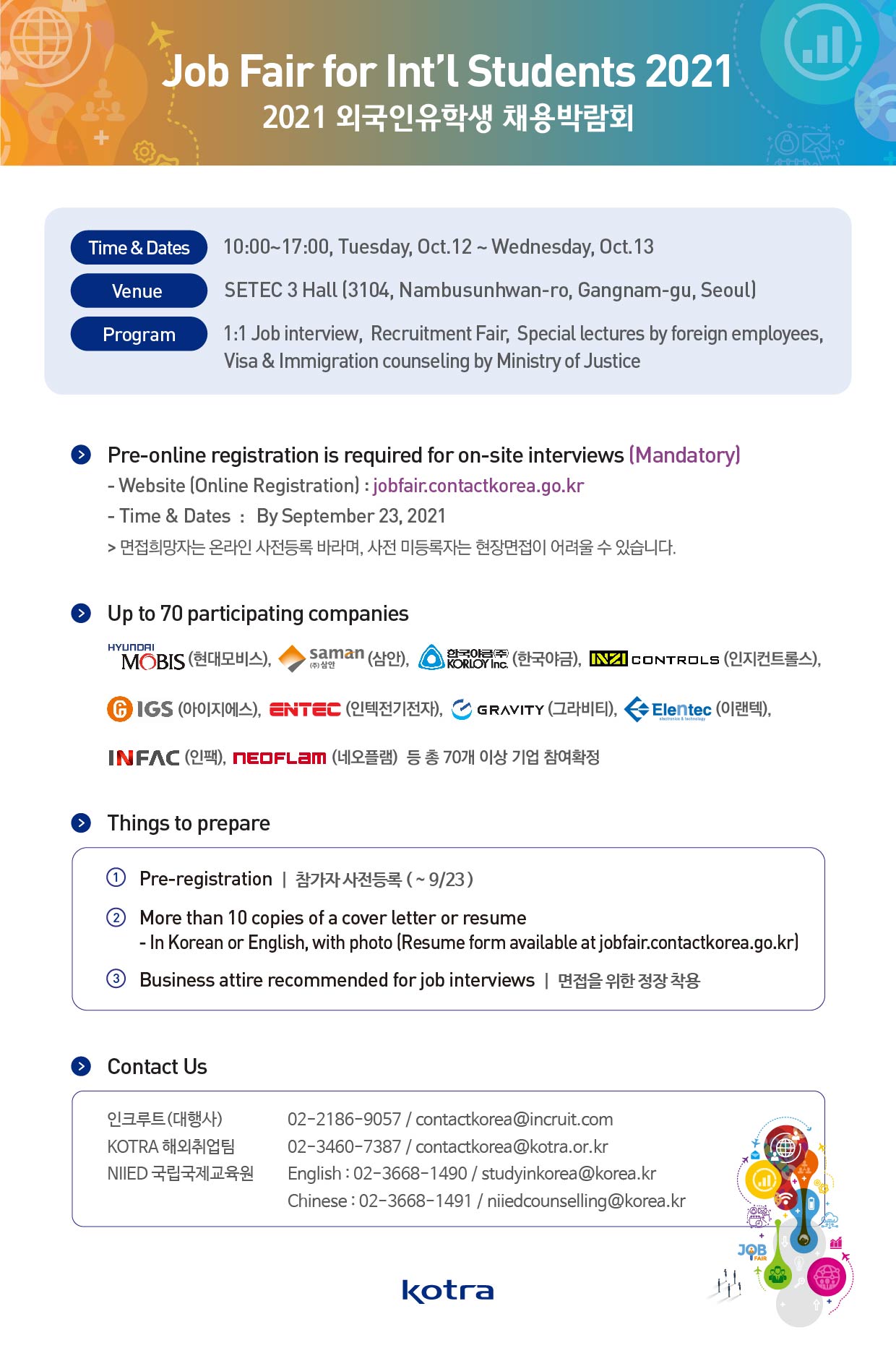 - [국립국제교육원] 2021 외국인 유학생 채용 박람회 참가 기업 등 추가 안내 및 홍보