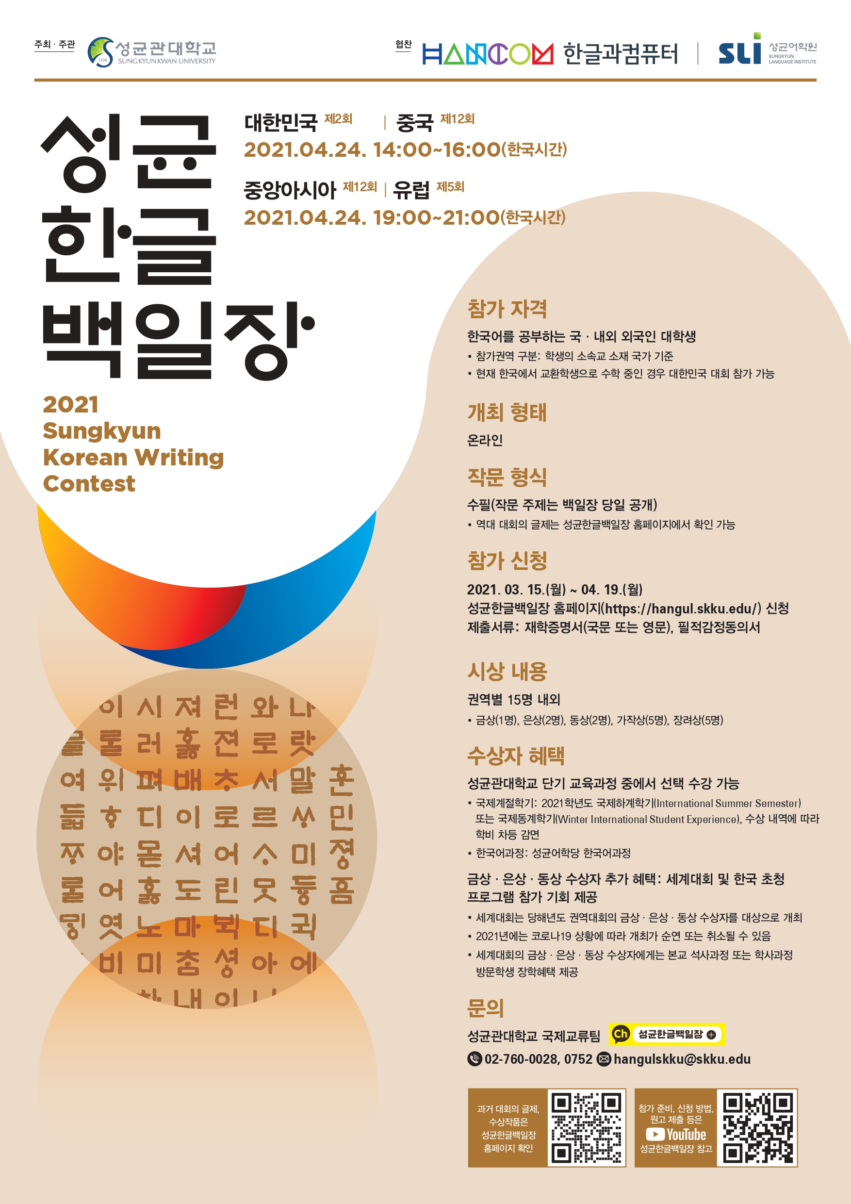 - 「제2회 대한민국 성균한글백일장」 개최 안내