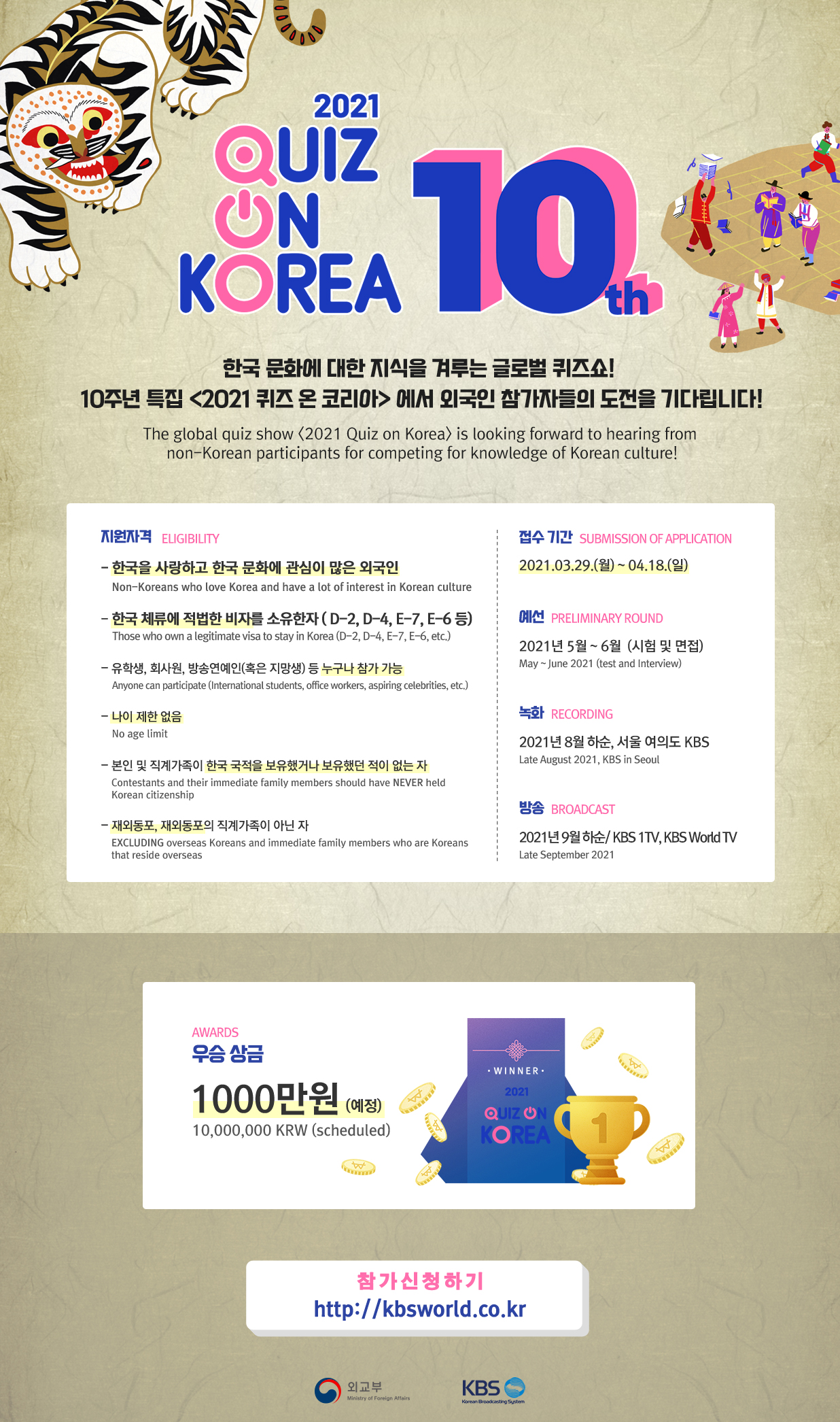 - 「2021 퀴즈 온 코리아 (Quiz on Korea)」 모집 안내