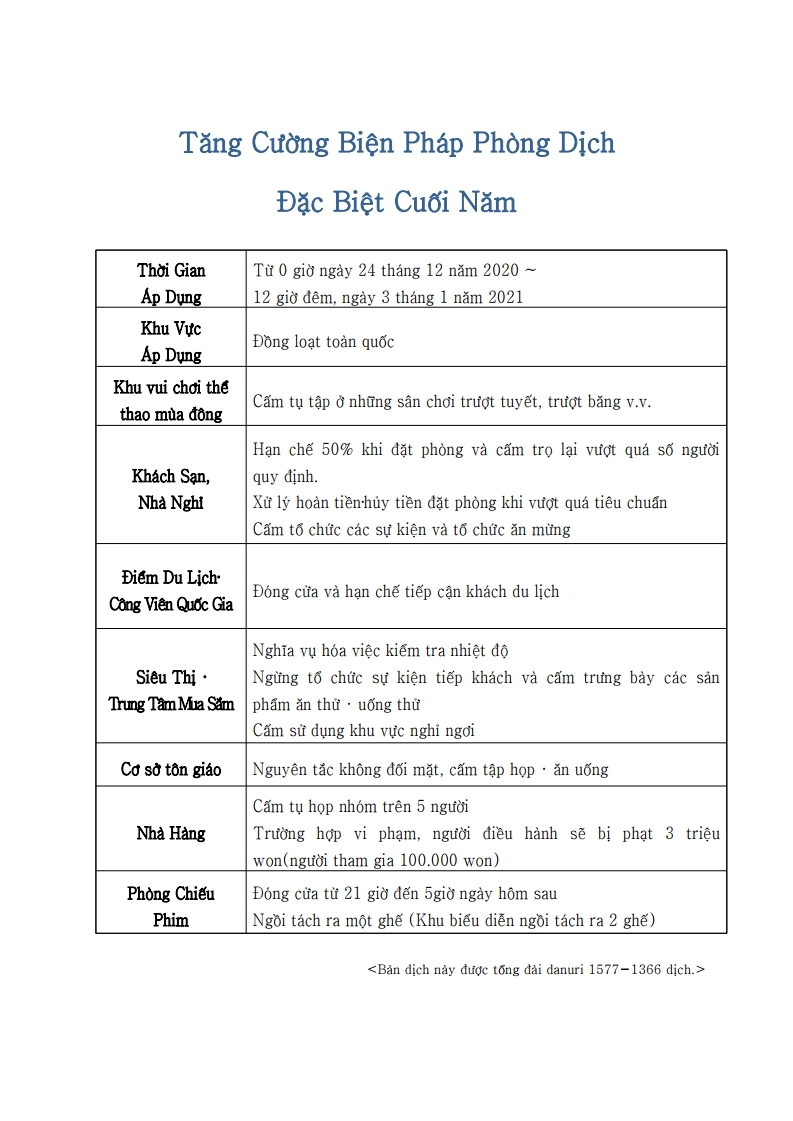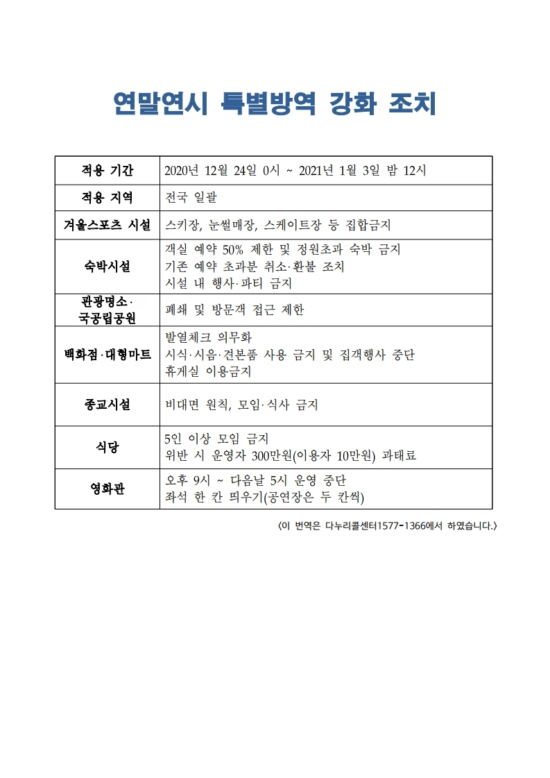 - 『코로나19 연말연시 특별방역 강화 조치』 3개국어 안내
