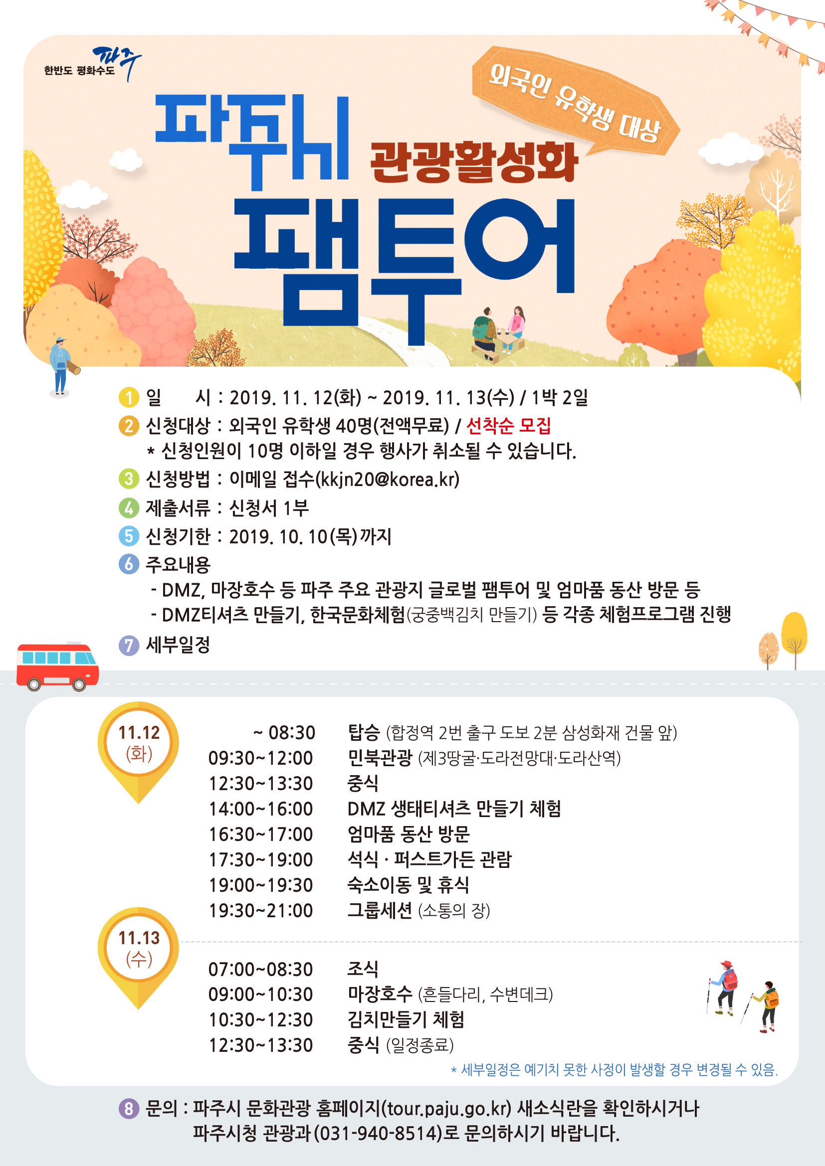 - '외국인 유학생 대상 파주 관광활성화 팸투어' 신청자 모집 안내
